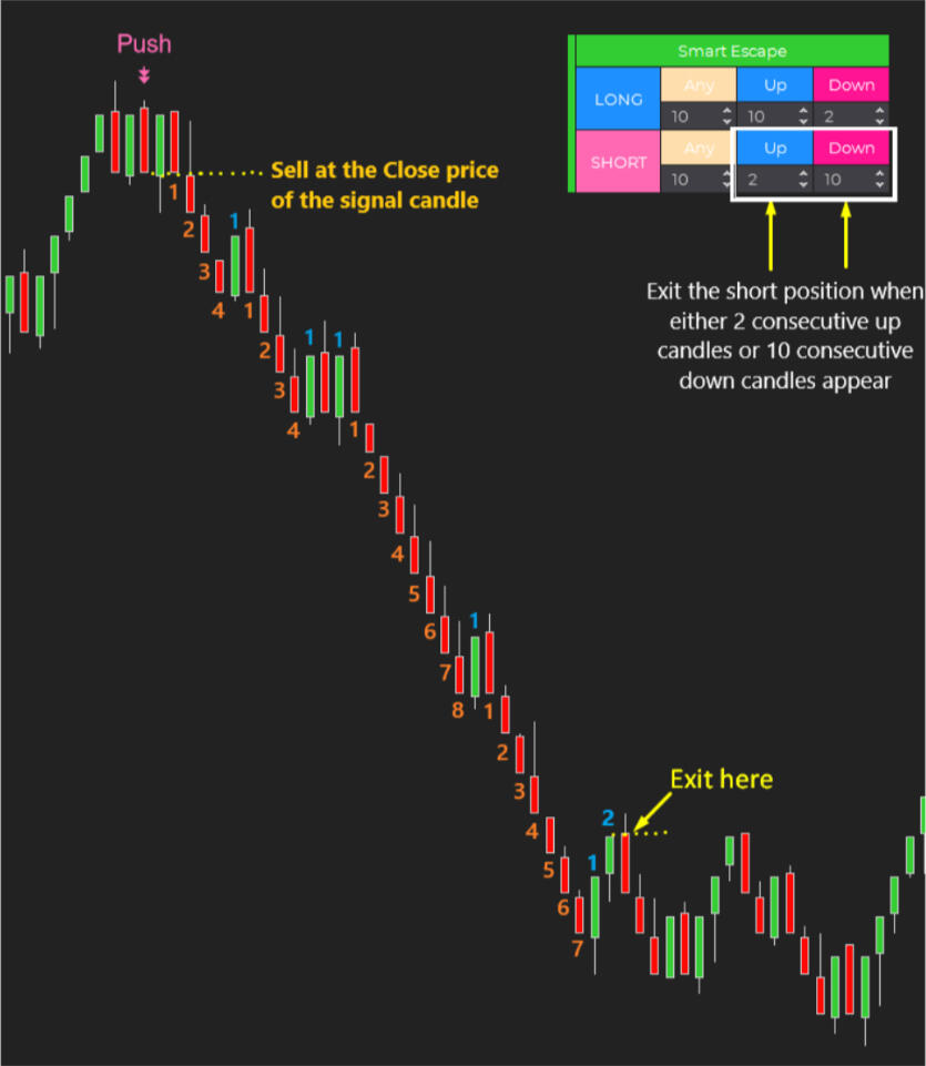 ● Reduce risk: Exit after 2 consecutive bullish candles.Smart Escape constantly monitors both conditions in real time and will automatically trigger whichever occurs first.